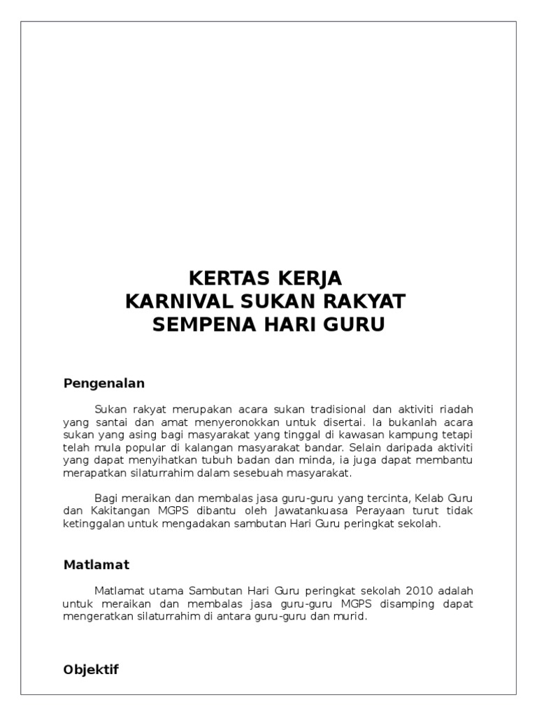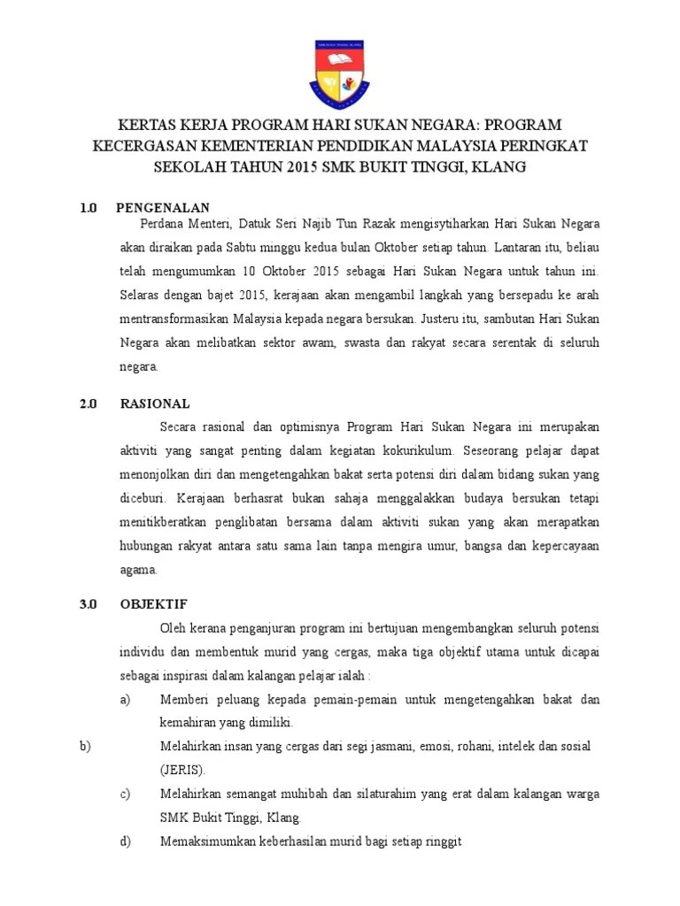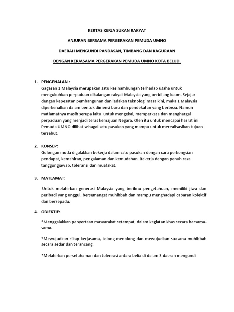 Format kertas kerja dan rancangan perniagaan. Kertas kerja pertandingan badminton 2010. Kertas kerja penganjuran karnival sukan rakyat 2011 fbru. Kertas kerja karnival sukaneka ria prasekolah sk seri bintang utara. Mijeamail published on october 29, 2013. Kertas kerja kem 1 murid 1 sukan. Contoh kertas kerja kem sukan. Padang bola kg selayang indah. Contoh kertas kerja sekolah rendah. Ada banyak acara yang me. Sukan rakyat (mengamalkan gaya hidup sihat dan membentuk semangat kesukanan yang tinggi ). Di harap dengan adanya himpunan kertas kerja dan laporan sukan tahunan, merentas desa dan sukan tara pihak yang terlibat dalam pengurusan sukan di sekolah seharusnya boleh merancang, mengurus dan melaksanakan kegiatan ini secara sistematik, cekap dan berkesan berlandaskan. You can create one as well, really easily.get started.